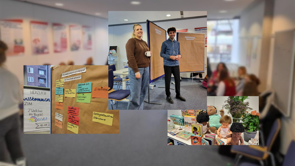 Am 10. November 2025 fand in den Räumlichkeiten des PARITÄTISCHEN Hamburg für alle DiSiKit-Kitas der zweite Begleitworkshop innerhalb der Projektlaufzeit statt. 17 Fachkräfte aus allen 10 Einrichtungen nahmen an der ganztägigen Fortbildung zum Themenschwerpunkt Gender teil. Den ersten Teil des Tages gestaltete Annica Petri vom Familienplanungszentrum Hamburg. Sie erarbeitete gemeinsam mit allen Teilnehmenden die Grundlagen des Aspekts Gender aus sozialwissenschaftlicher und pädagogischer Perspektive. Fragen wie „Woher wissen wir, welches Geschlecht ein Mensch hat?“ oder „Wofür ist es wichtig, welches Geschlecht ein Mensch hat?“ gaben Anlass, die Rolle von geschlechtsbewusster Pädagogik in Kindertageseinrichtungen zu reflektieren.